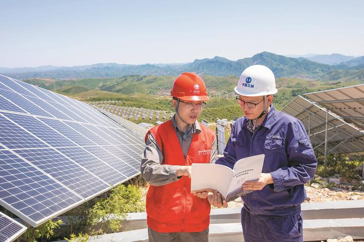国网秦皇岛供电公司职工向三峡厂沟光伏电站责任主谈主员教师新能源场站智谋体检阐发。史文全摄